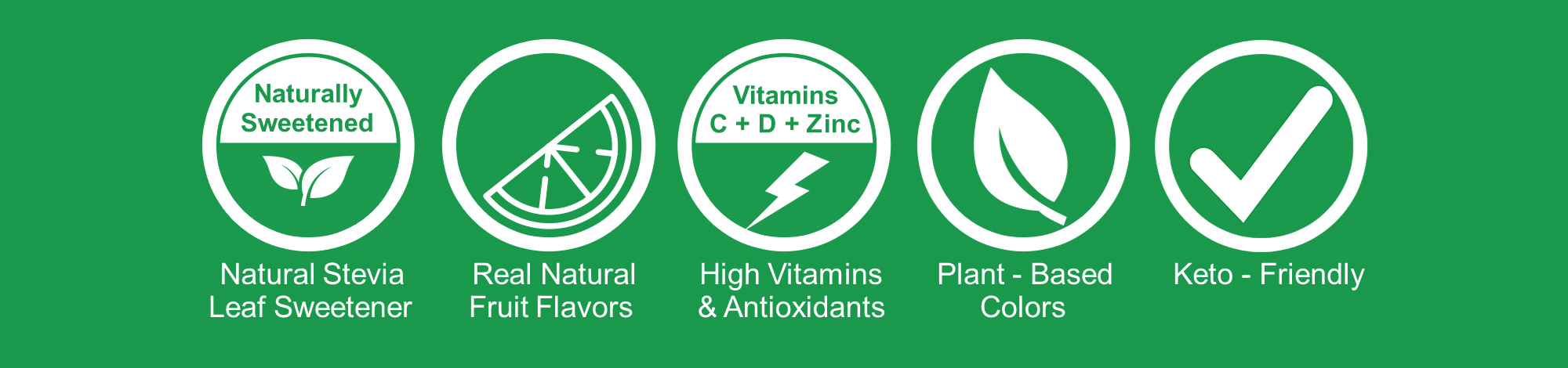 Delicious Natural Flavor & Sweetener. Caffeine from Green Tea, High in Vitamins. No Sugar, No Junk.